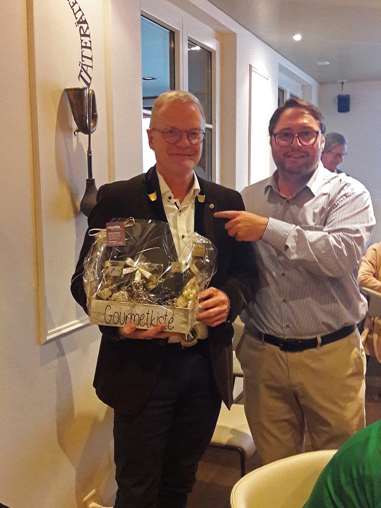 An dieser GV wurden in Anerkennung ihrer geleisteten Dienste und unter grossem Applaus Hans Möhr als ‘Immediate Past President’, und Markus Raschle als ‘President’ verabschiedet. Beide übten Ihr Amt während zweier Jahre aus. Schliesslich wurde das Amt des Präsidenten an Märk Fankhauser übergeben, der in einer kurzen Ansprache, seiner Freude über die Ehre den Club führen zu dürfen, Ausdruck verleiht.