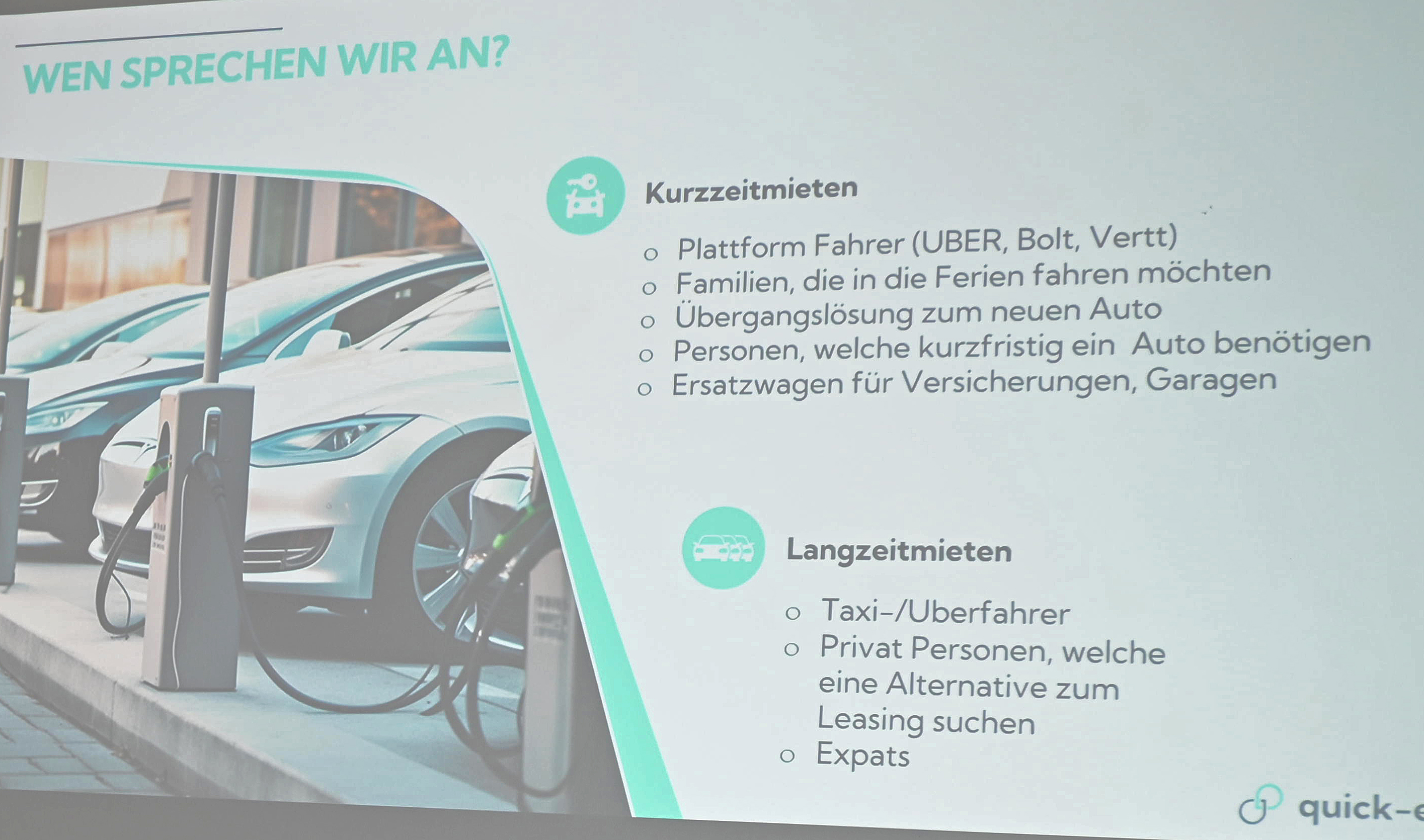 Auf diesen Fakten und Überlegungen aufbauend, entwickelte Simon Pfenninger die weiteren Schritte. Der Name Quick-e ist Programm – weil’s schnell geht, weil kein ‘Papierkram’ anfällt und das Geschäft ausschliesslich um umweltschonende Elektroautos geht. Quick-e bietet über die eigene Website ein breites Sortiment an Elektrofahrzeugen an und schafft so ein ideales Kundenerlebnis für Taxi- und Limousinenfahrer. Auch Geschäfts- und Privatpersonen gehören zur quick-e Kundschaft.