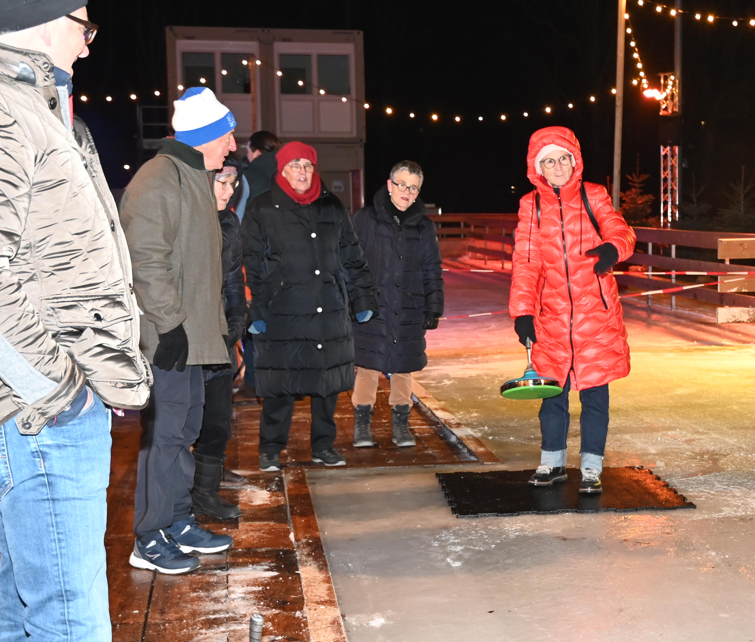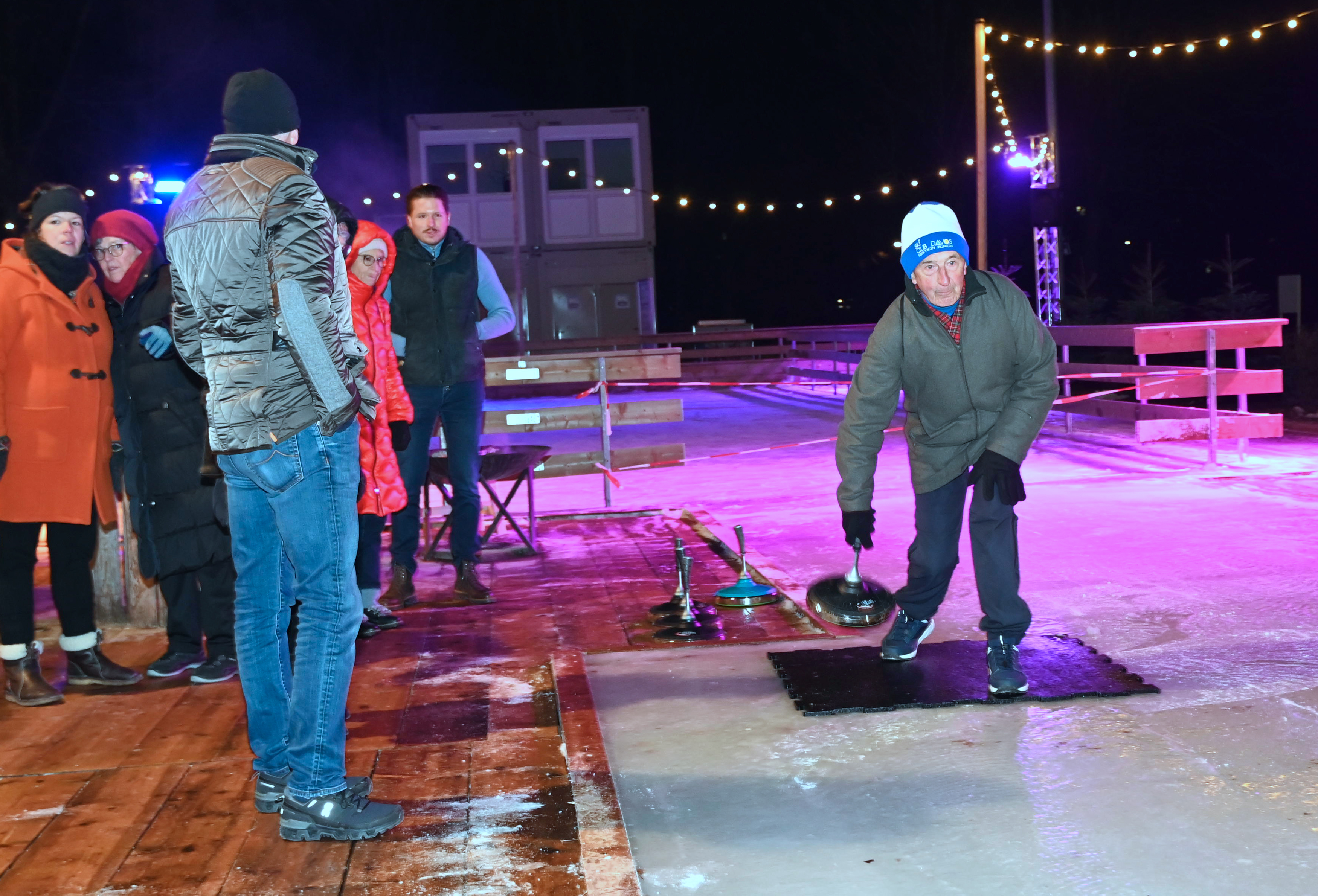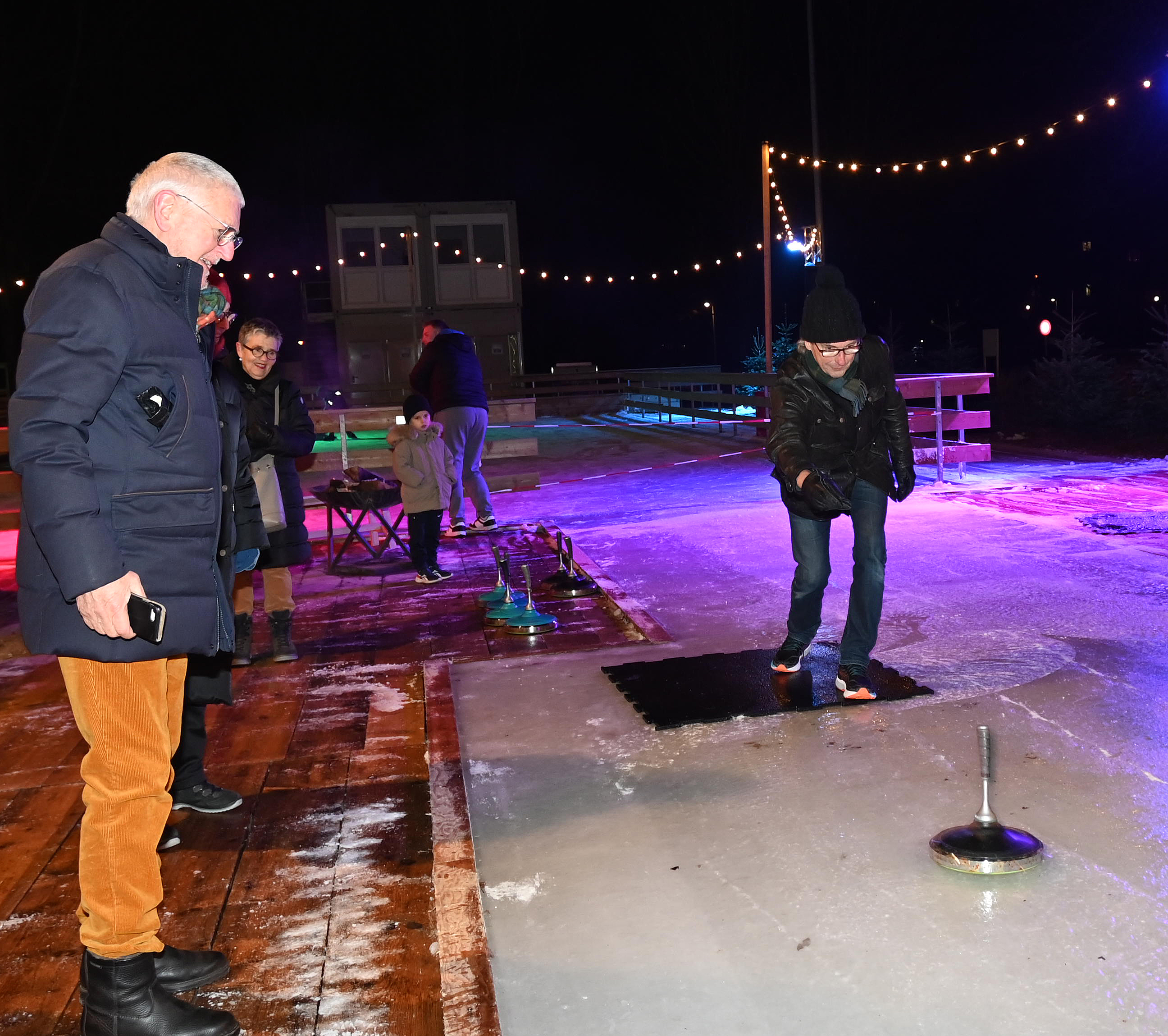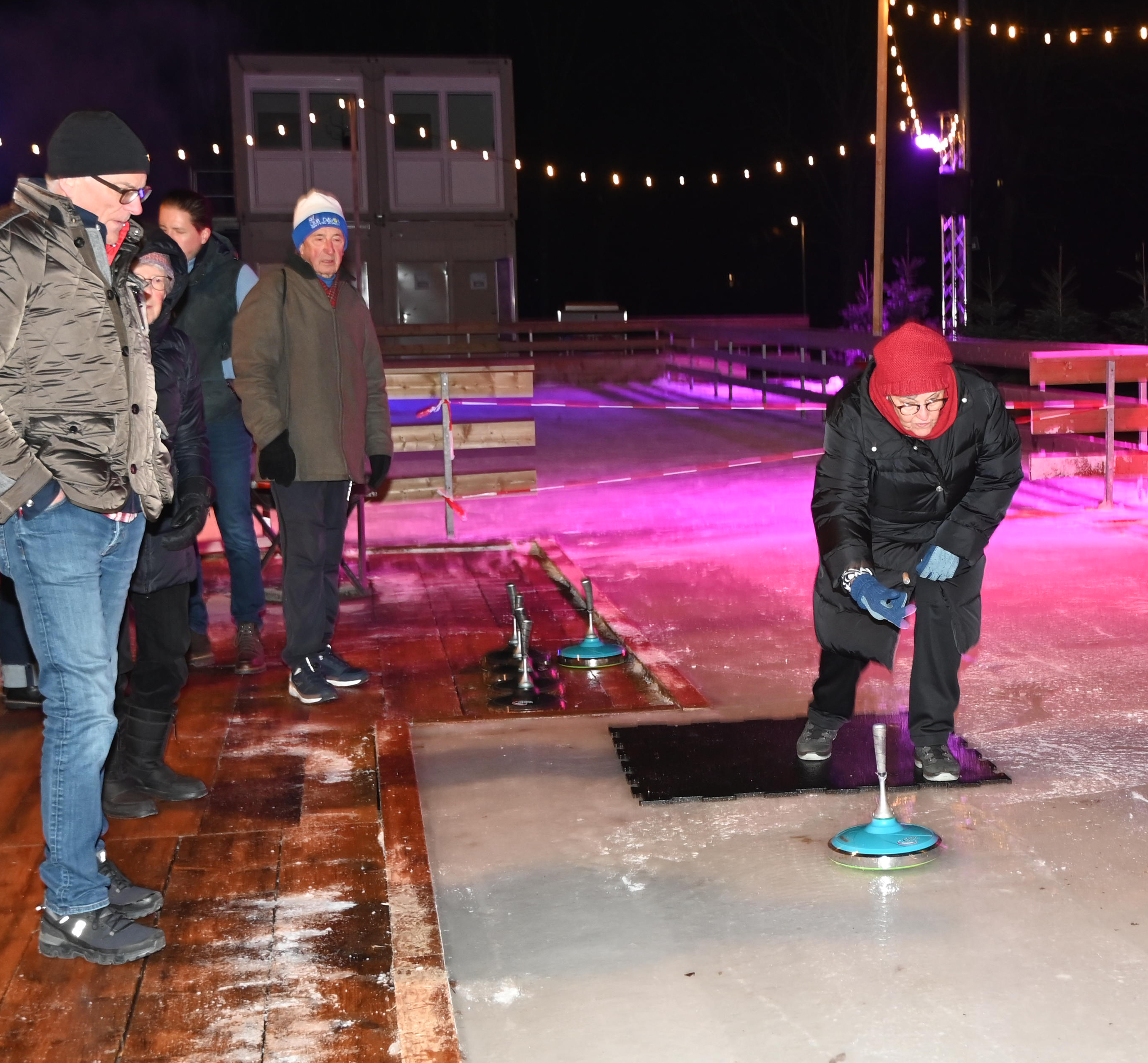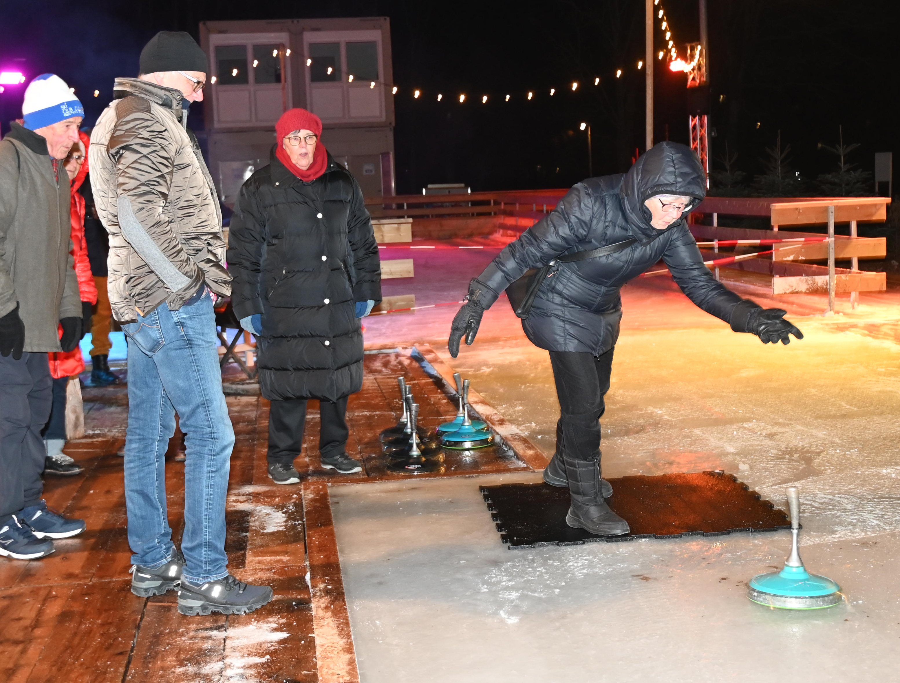 Ein Dutzend Unentwegte habe sich am 09.01.2024 aufgemacht, auf der temporären Eisbahn in der Tüfi, Adliswil, einen gemütlichen Abend zu verbringen. Die erste Stunde gehörte dem Sport: Dem Eisstockschiessen. Die anwesende Fachfrau liess es sich nicht nehmen die nicht allzu schwierigen Spielregeln zu erklären. Der Kälte wegen bewegungshemmend eingepackt, mit viel guter Laune und eher weniger Können, entwickelte sich das Spiel zu einem «harten aber fairen Kampf» zwischen dem Frauen- und dem Männerteam. Die Ergebnisse änderten sich von Runde zu Runde, doch letztlich siegte das Team Männer.
