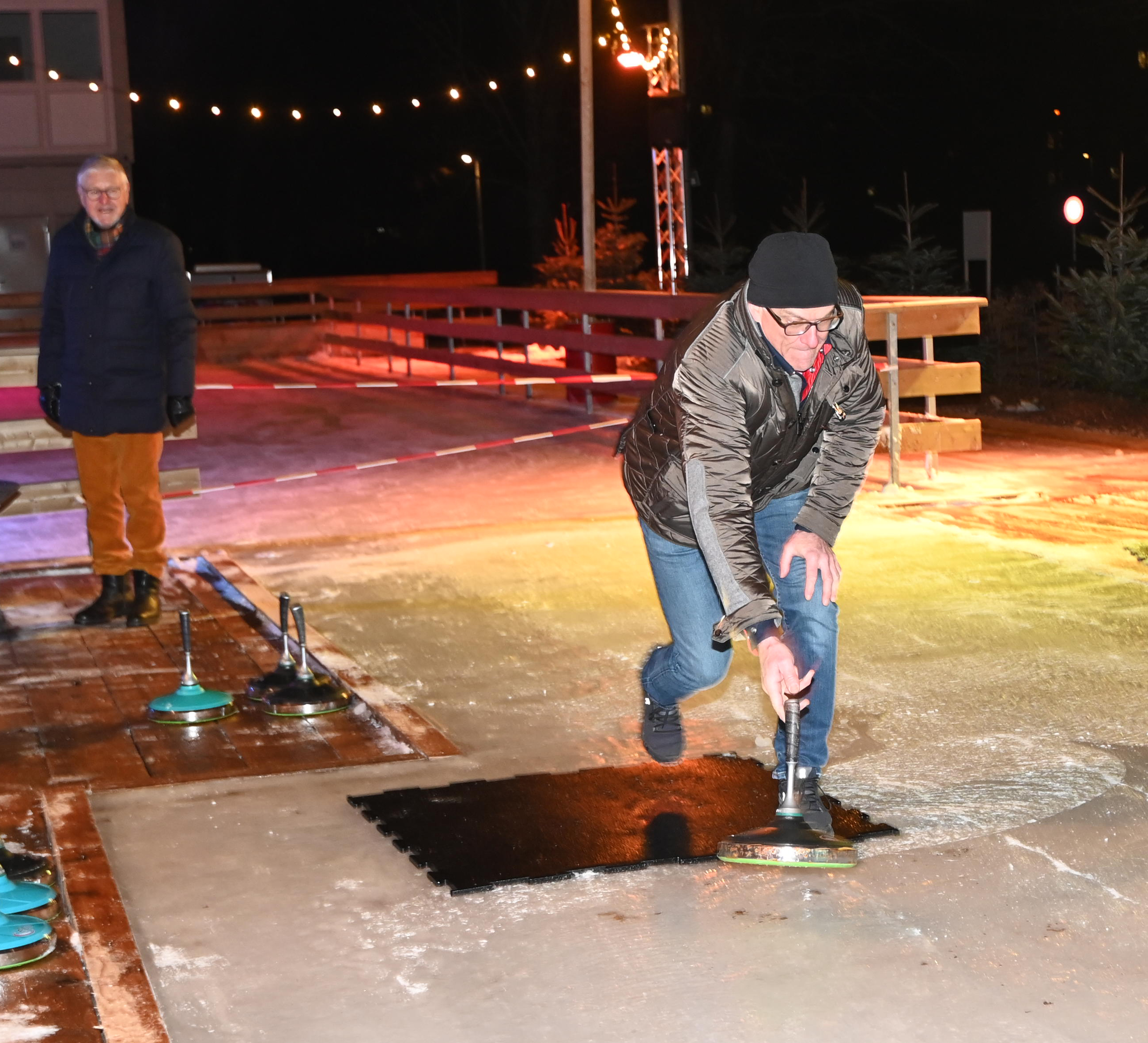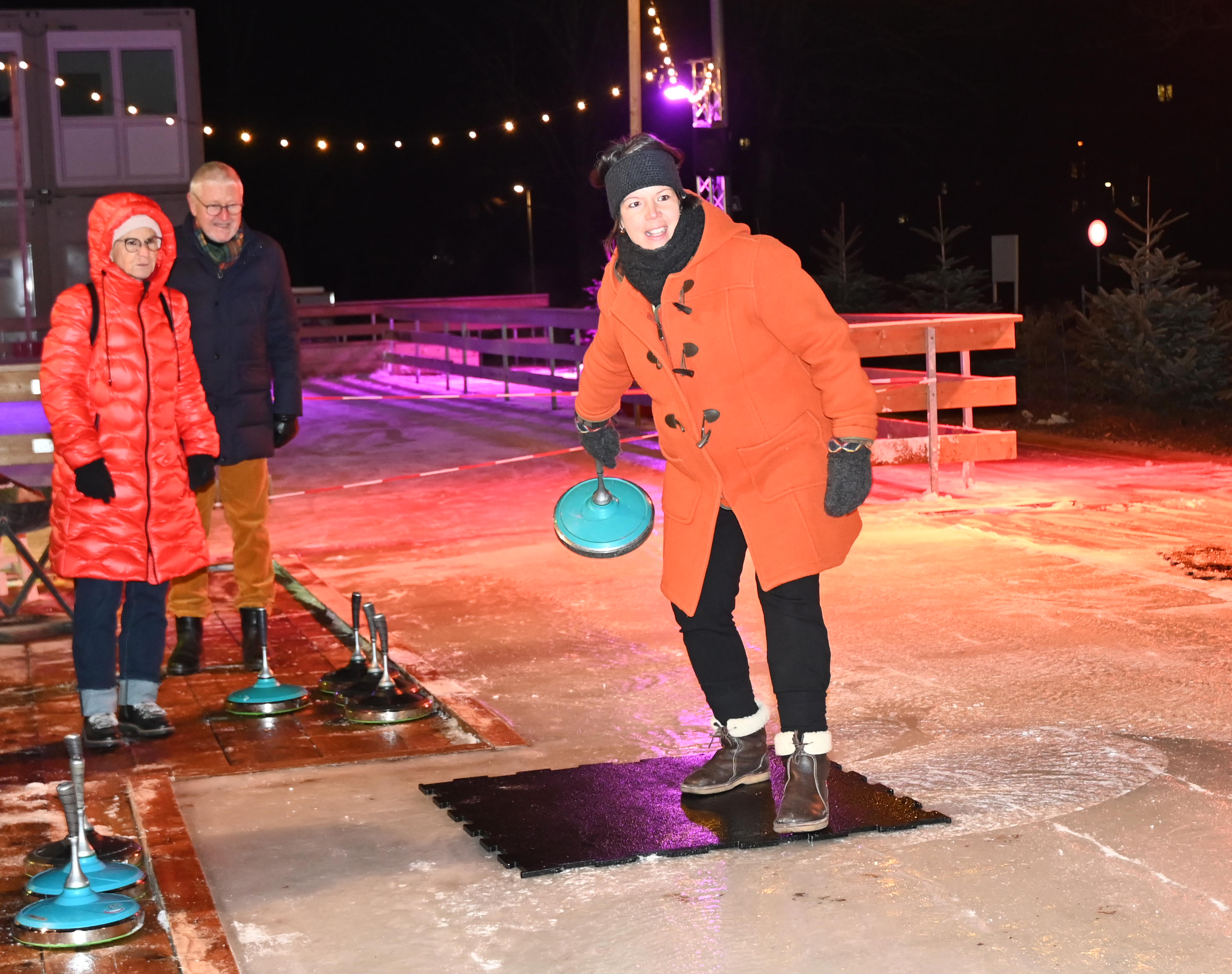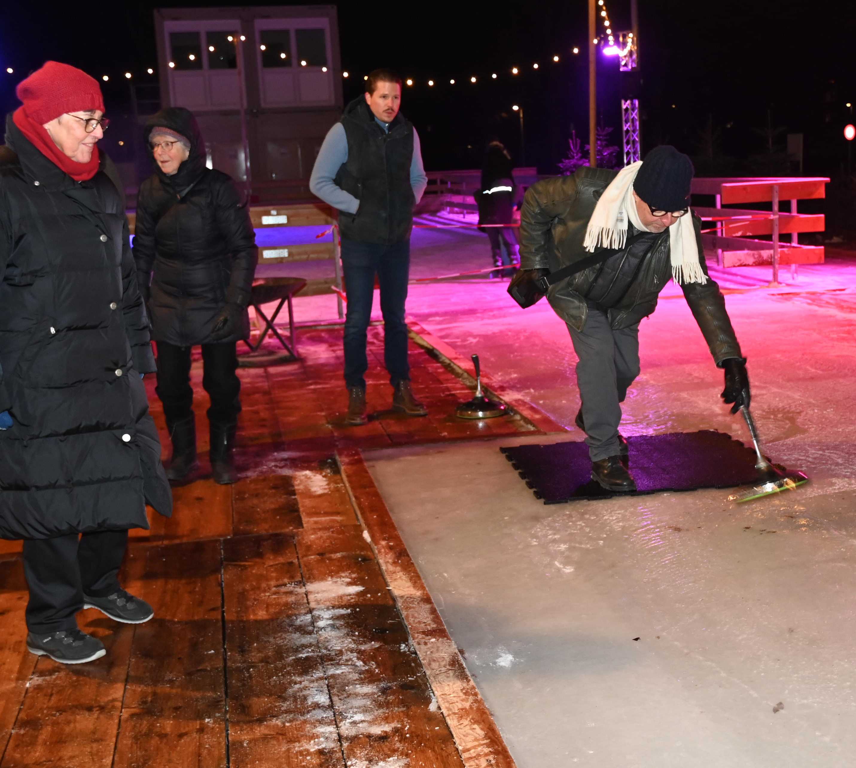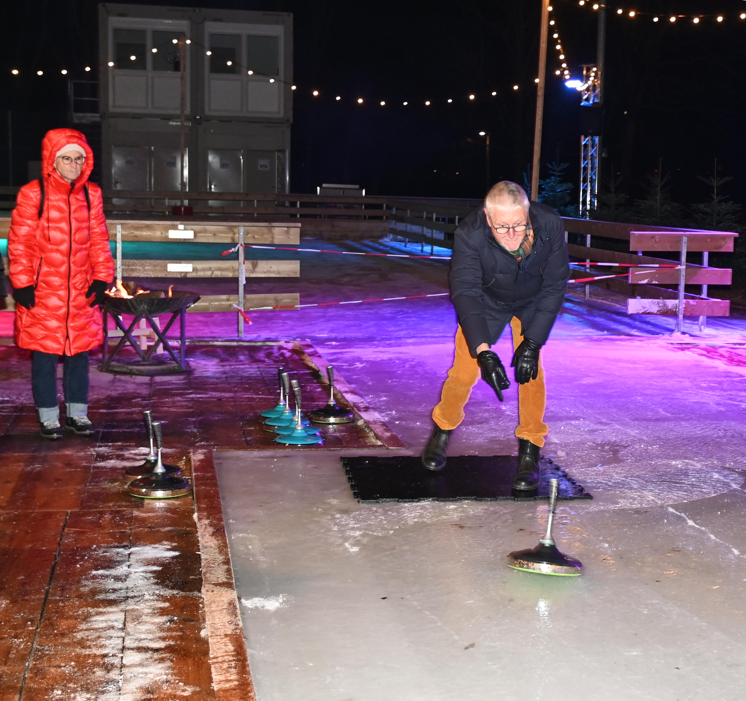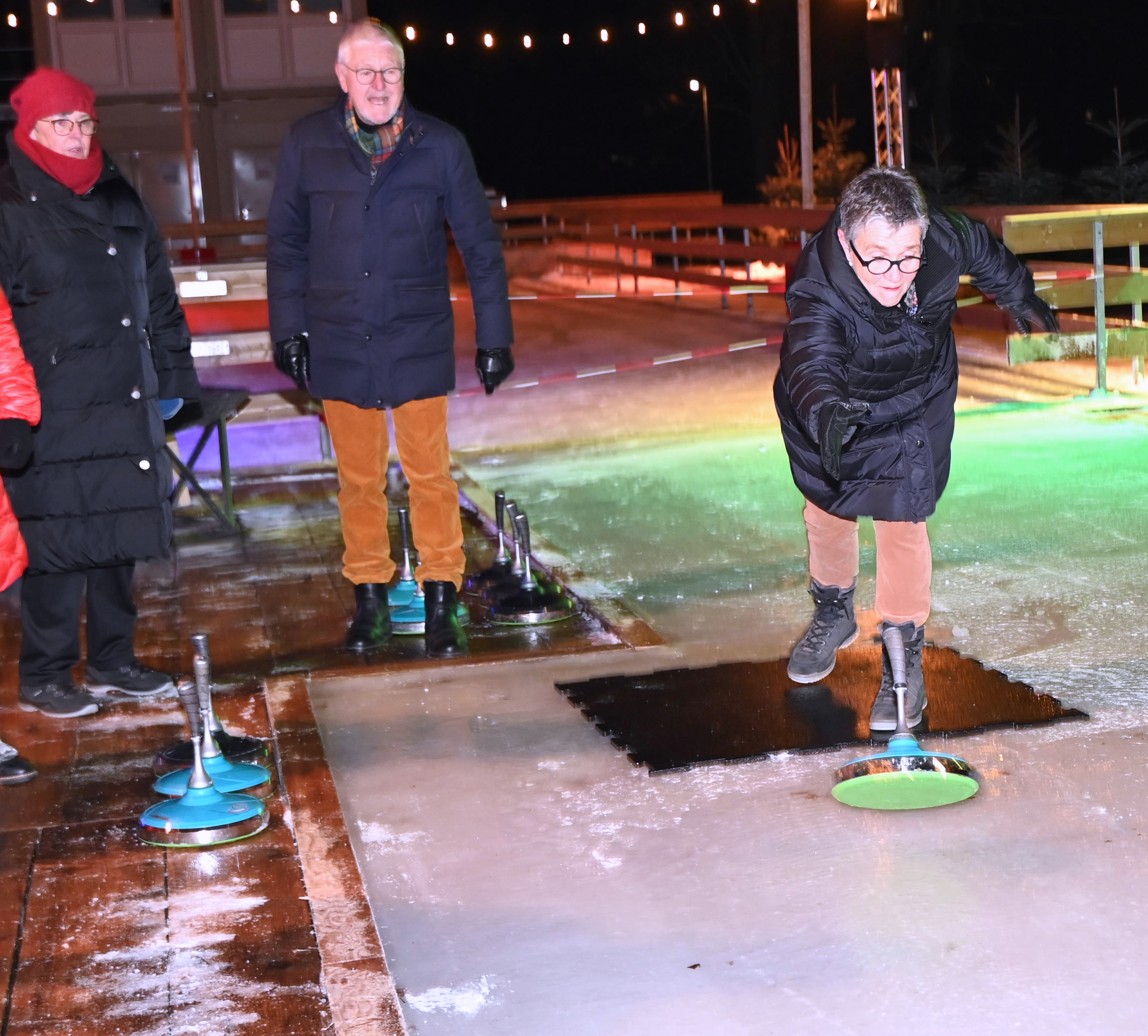 Ein Dutzend Unentwegte habe sich am 09.01.2024 aufgemacht, auf der temporären Eisbahn in der Tüfi, Adliswil, einen gemütlichen Abend zu verbringen. Die erste Stunde gehörte dem Sport: Dem Eisstockschiessen. Die anwesende Fachfrau liess es sich nicht nehmen die nicht allzu schwierigen Spielregeln zu erklären. Der Kälte wegen bewegungshemmend eingepackt, mit viel guter Laune und eher weniger Können, entwickelte sich das Spiel zu einem «harten aber fairen Kampf» zwischen dem Frauen- und dem Männerteam. Die Ergebnisse änderten sich von Runde zu Runde, doch letztlich siegte das Team Männer.
