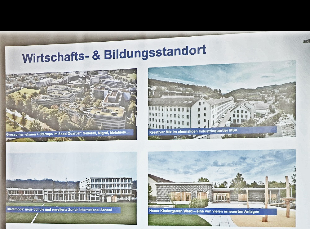 Der Wirtschafts- und Bildungsstandort Adliswil entwickelt sich stetig positiv weiter - auch auf Kosten der Stadt Zürich. Gemäss einem Artikel im Tagesanzeiger vom 15. Januar 2024 ist Adliswil mit 2627 Abwanderern aus Zürich in den Jahren 2019 – 2023 auf dem 5. Platz der entsprechenden Statistik. Der Referent erklärt sich die vielen Zuzüge mit der Attraktivität für Familien: Gute öffentliche Schulen (auch neu gebaute), eine Rudolf-Steiner-Schule und die Zurich International School. Zudem ist man schnell in der Natur, die öffentlichen Verkehrsmittel wurden ausgebaut, die S-Bahn-Linie dichter getaktet und die Buslinie an den Bahnhof Wollishofen verlängert. Aus denselben Gründen haben Grossunternehmen wie Generali, Migrol und Metafuels sowie Startups und zahlreiche, auch kreative Gewerbebetriebe, den Weg nach Adliswil gefunden.